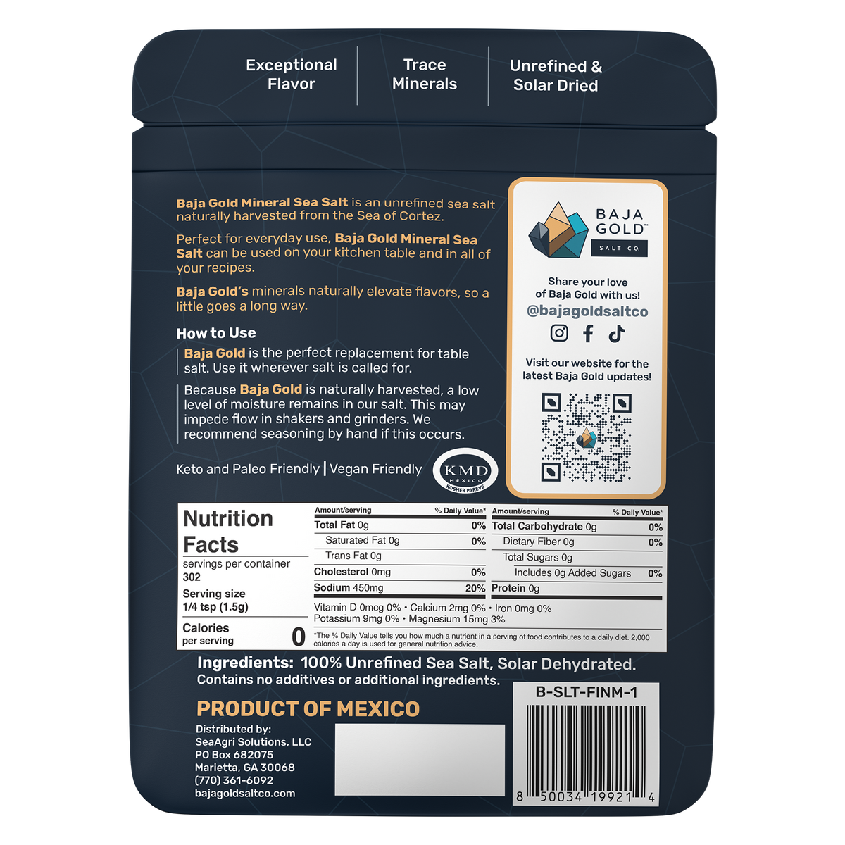 Baja Gold Salz ist ideal für den täglichen Gebrauch. Sie können es auf dem Tisch oder in all Ihren Gerichten verwenden. Probieren Sie es noch heute – Ihre Geschmacksknospen werden es Ihnen danken!
