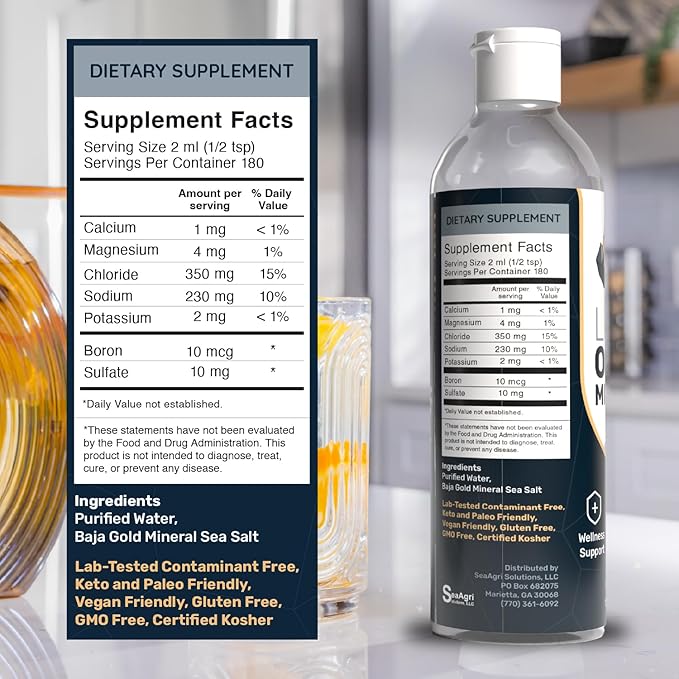 Baja Gold Ocean Power KONZENTRAT: Geben Sie 1 Teelöffel (ungefähr 1 Verschlusskappe) in Wasser, um sofort einen Schub ionischer, meeresbasierter Elektrolyte zu erhalten. Dieses Konzentrat enthält mehrere Portionen und ist zur Verdünnung vorgesehen. Beschränken Sie sich auf 2 Portionen pro Tag.